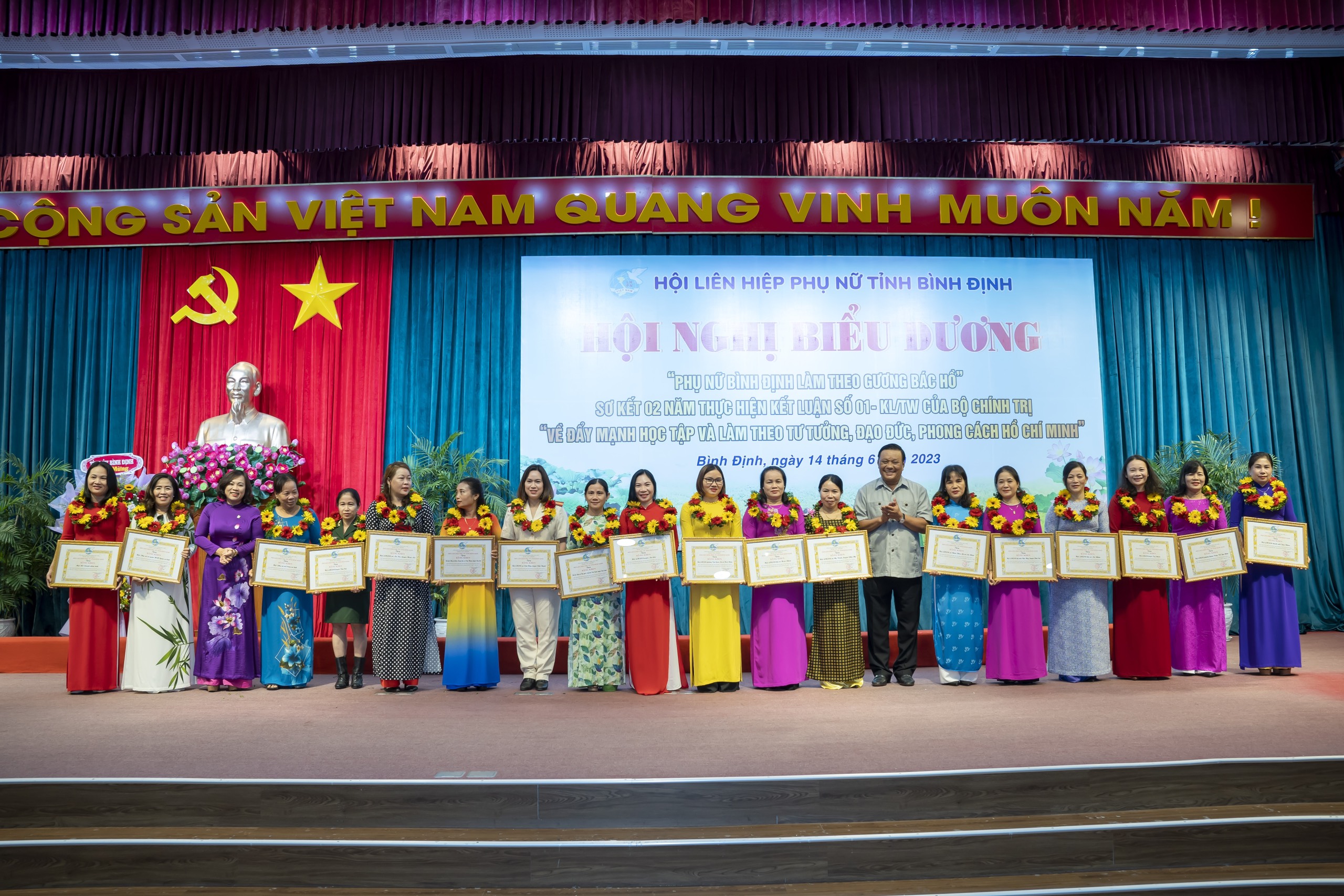 Sáng 14.6, tại Trung tâm Hội nghị tỉnh, Hội LHPN tỉnh tổ chức Hội nghị biểu dương Phụ nữ Bình Định làm theo gương Bác Hồ và sơ kết 2 năm thực hiện Kết luận số 01-KL/TW của Bộ Chính trị về tiếp tục thực hiện Chỉ thị số 05-CT/TW về đẩy mạnh học tập và làm theo tư tưởng, đạo đức, phong cách Hồ Chí Minh.