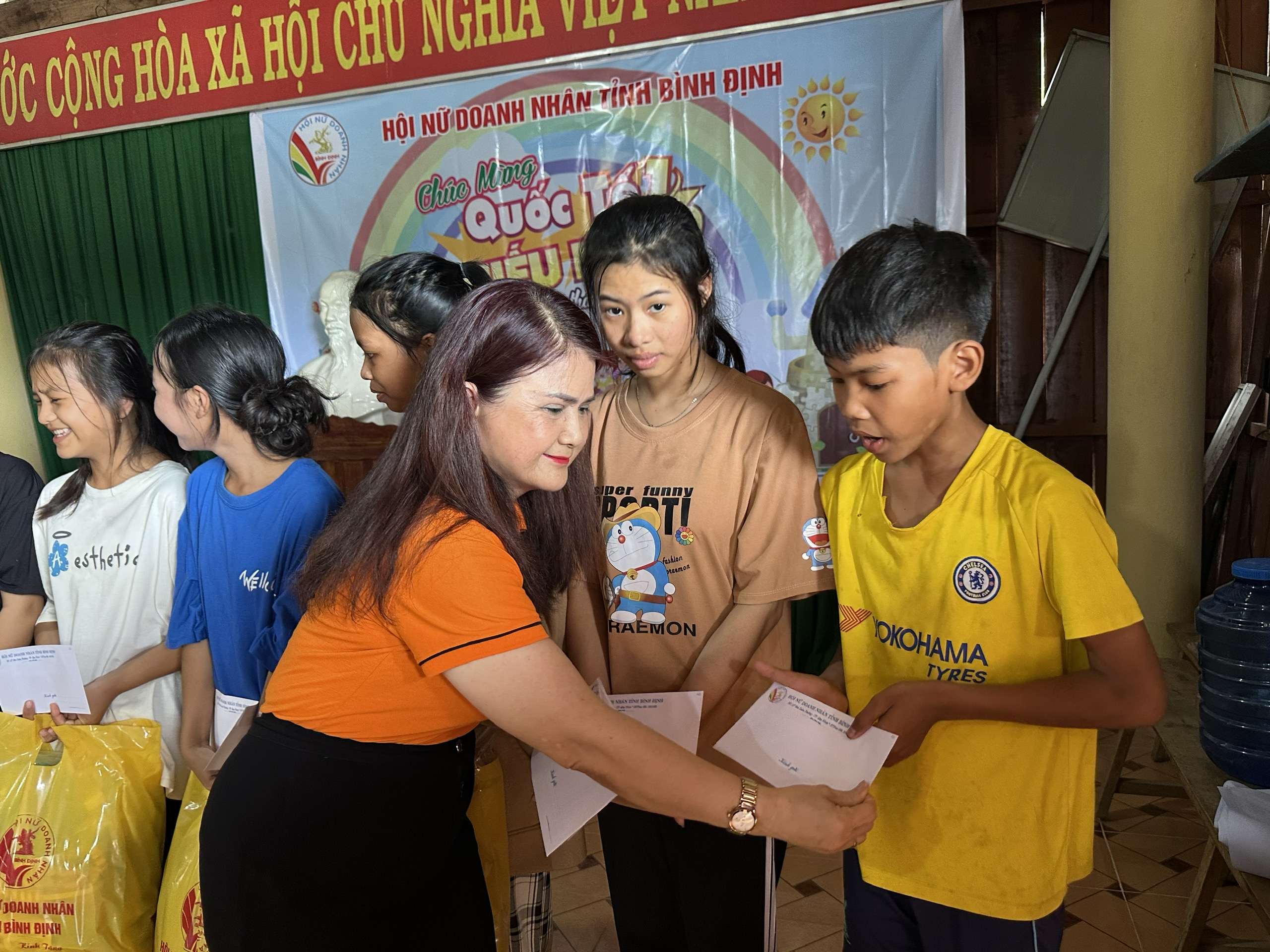 Tại điểm đến, Hội nữ doanh nhân Bình Định đã thăm hỏi, động viên tinh thần sức khoẻ của các em, động viên các em cố gắng vươn lên trong học tập cũng như trong cuộc sống. Mặc dù phần quà tuy không lớn, nhưng đó tấm lòng sẻ chia của các chị với mong muốn chia sẻ khó khăn, đem đến cho trẻ em một cái Tết thiếu nhi vui hơn, ý nghĩa hơn.